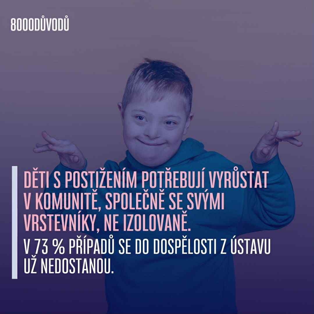 “Ústav není místo, ve kterém lze zajistit naplnění všech práv a potřeb dítěte na soukromí, maximální rozvoj, rodinné prostředí či zapojení do komunity,” uvádí 8000 důvodů.
